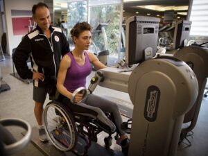 Diese schwerverletzten Mitglieder sind nicht zum Training in einen Fitnessraum oder Übungen und Ausrüstung des herkömmlichen physiotherapeutischen Regimes in der Lage. Die Behandlungen finden auf Matratzen statt und umfassen Übungen zur Verbesserung der Flexibilität und der Bewegungsspanne, zur Stärkung der Muskeln und zur Verbesserung der Stabilität.